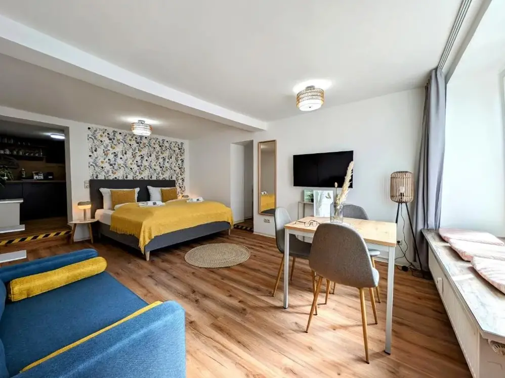 「ボーンアパートメントズ・デザインスイート アム マルクト」は、ドイツのイルメナウ市中心部に位置し、商業施設をリノベーションしたユニークなコンセプトで構築されたアパートメントです。24マルクシュトラーセ(98693 イルメナウ)に所在するこの宿泊施設では、広々とした室内設計と高級なインテリアが特徴となっています。短期滞在向けに最適化されており、長期間の休暇にはやや不向きですが、その空間感と機能性から評価が高いことが分かります。「ゲーテ博物館」や「ラトゥース」(市庁舎)へも徒歩圏内であり、周辺にはパン屋さんやカフェなど日常生活に便利な店舗が点在しています。また、「ハヴァンナバー・イルメナウ」まで約450メートルという立地のため、夜間にも活気ある場所での過ごし方が可能です。近隣には「ティチーボ」ストア(200メートル)、公園喫茶(「パークカフェ・イルメナウ」、950メートル)、そして自然環境として「ツーリンガー・ヴォルト」への入り口となる「ビュンクマゼアム・アム・レーニシュタイグ」(10キロメートル)まで車で簡単にアクセスできます。ホテル側では無料Wi-Fiサービスを提供しているほか、「ファミリー用の部屋」「駐車場」も確保されているため、家族連れでも快適に滞在できるでしょう。
